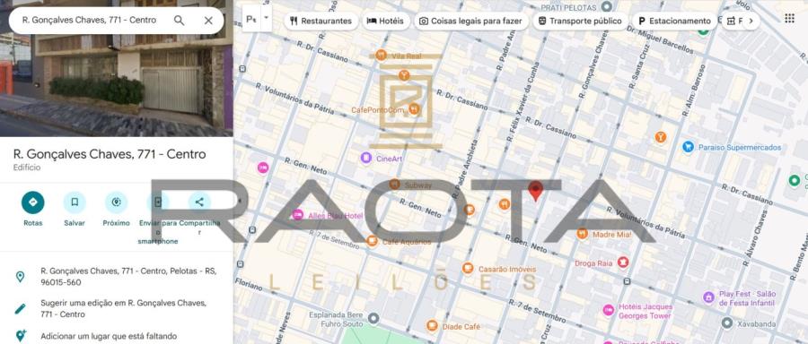 O imóvel de matrícula nº 38.655 do 2º Registro de Imóveis de Pelotas, consistente em “UM TERRENO, situado nesta cidade, contendo construído um prédio de alvenaria, com dois pavimentos e cinco aberturas à Rua Gonçalves Chaves, distante 16,60 metros da esquina da Rua Voluntários da Pátria, antes Rua Voluntários, medindo 10,45 metros de frente leste, por 40,10 metros de frente a fundos, até entestar, a oeste, com a viúva Edith Silveira Lhullier, dividindo-se ao norte com terrenos da viúva Helmínio Cunha, e, ao sul, com Geraldo Pires Reis e sua mulher, cadastrado na Prefeitura Municipal sob o número 771, da referida Rua Gonçalves Chaves”.